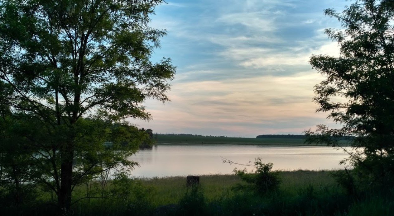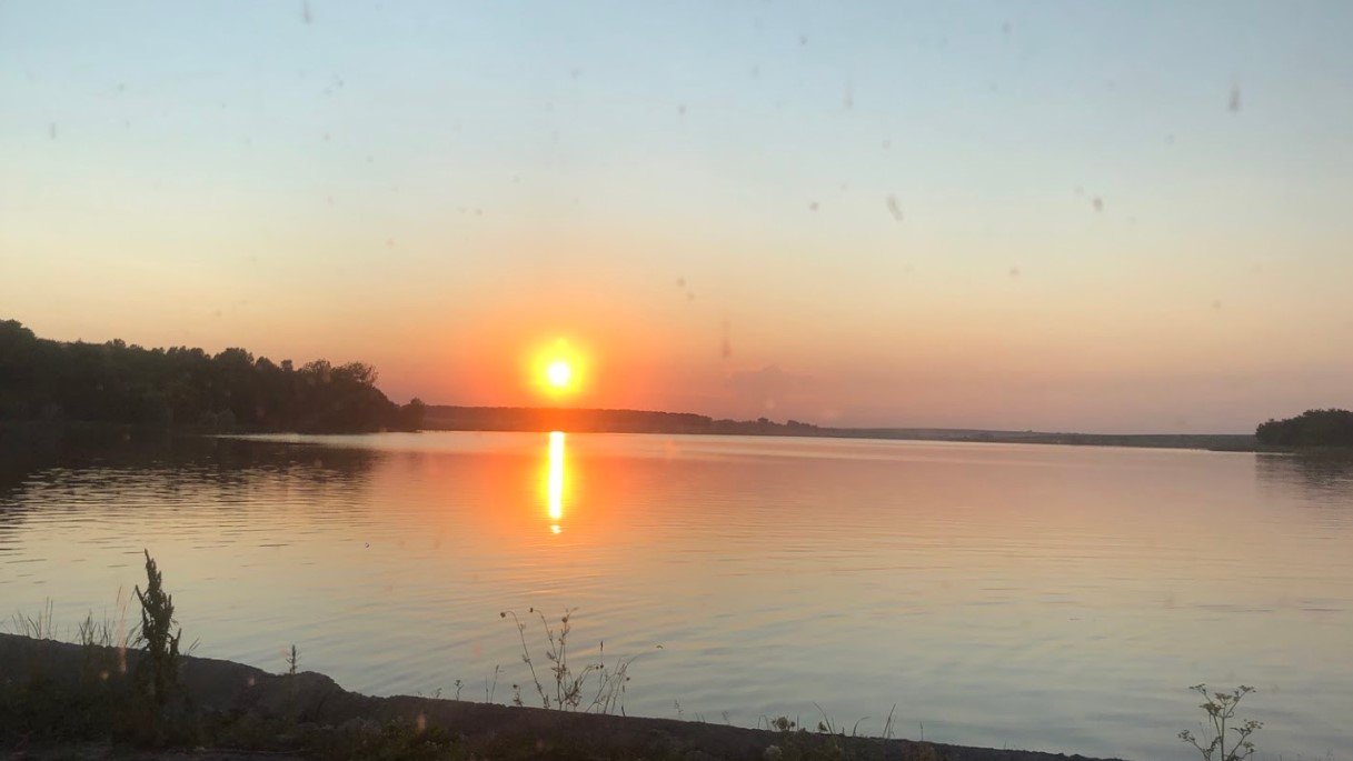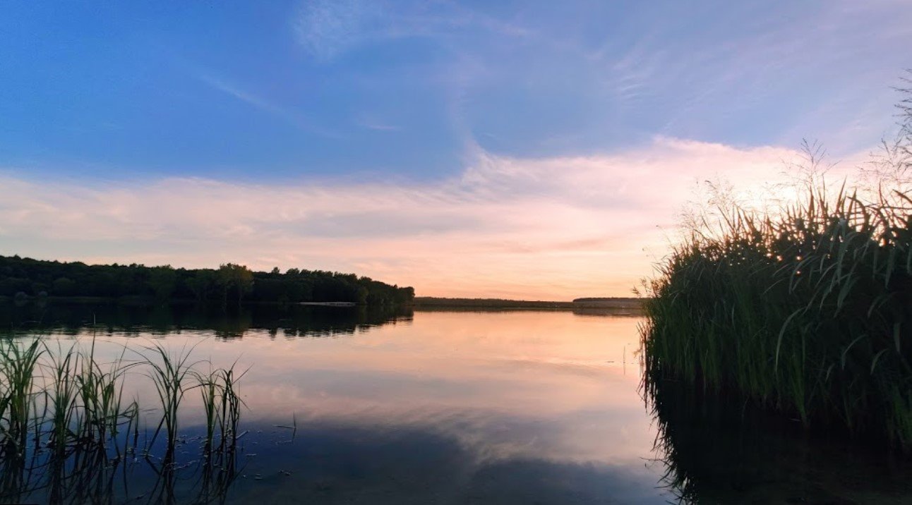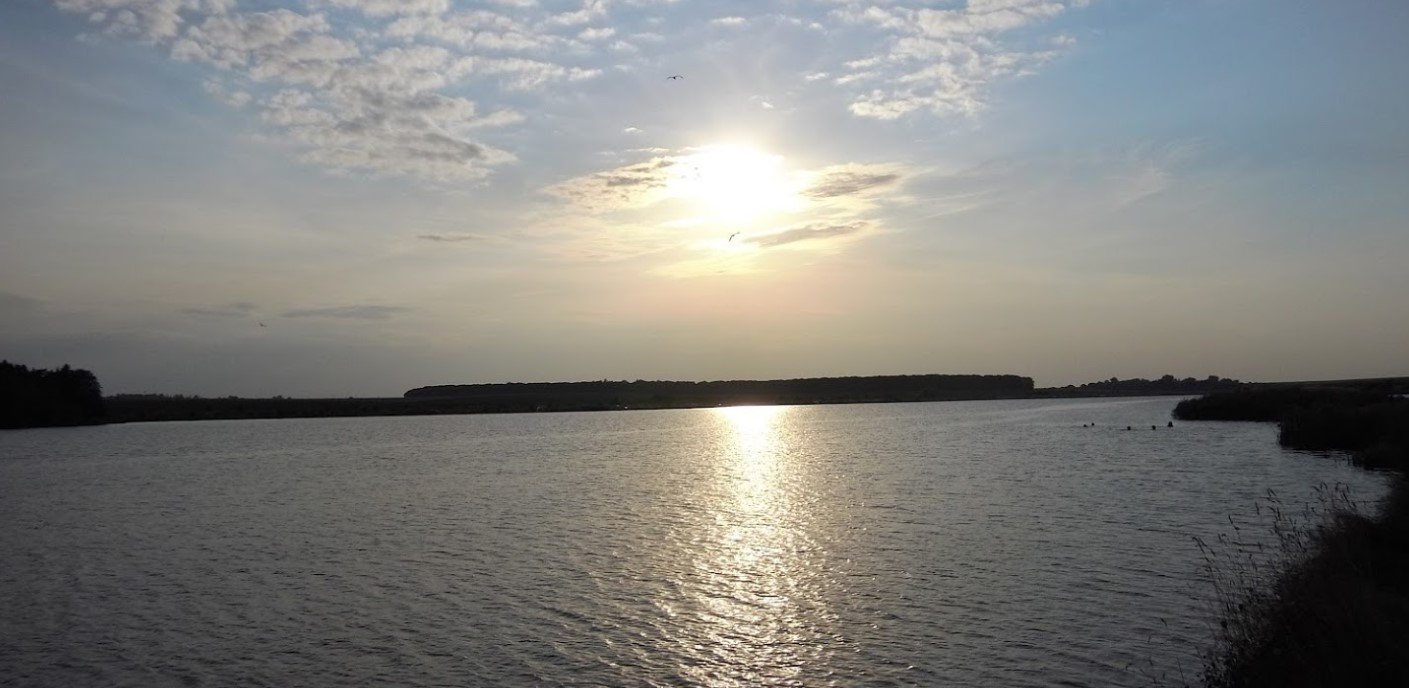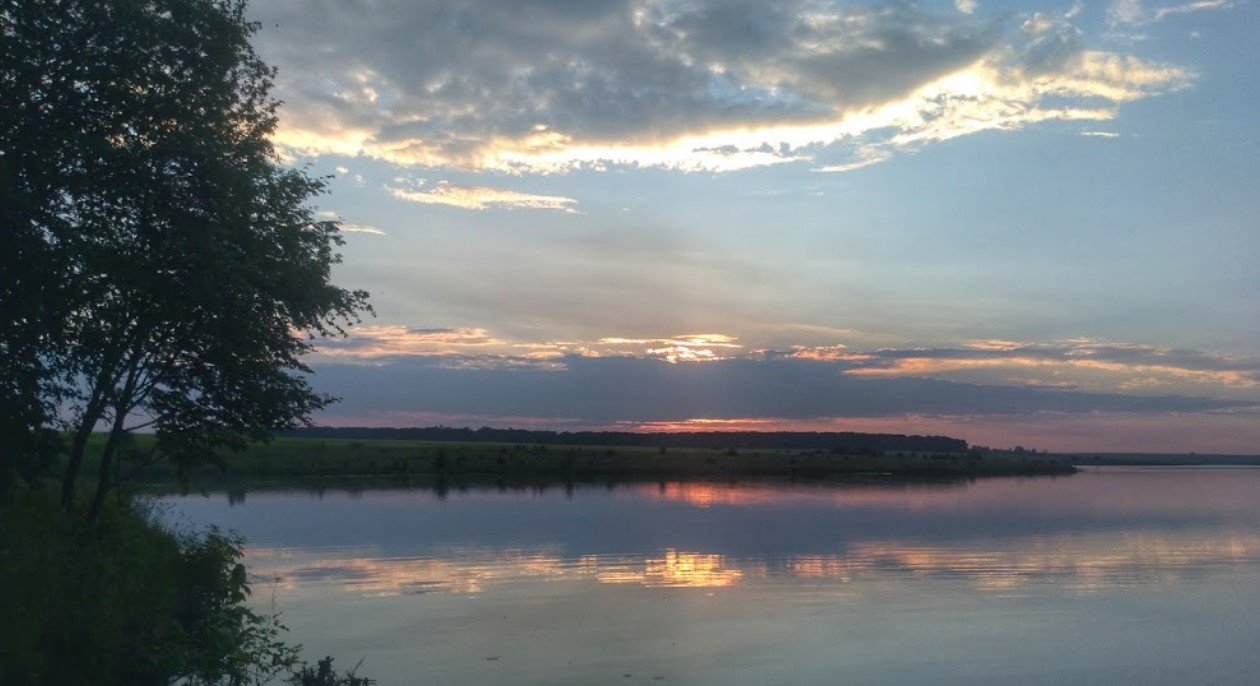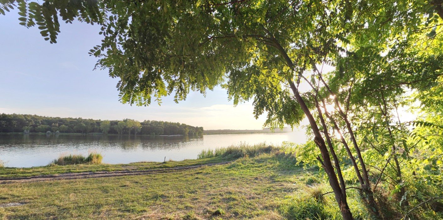 Чиста вода, на одній стороні ми з палаткою і вудочками. На іншу ходили на "пляж" купатись.